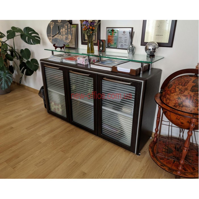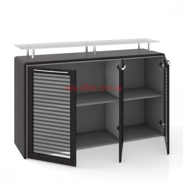 | Фурнітура | Кріплення полиць "рафікс"; Фасад шафи - скло «Флутс» в МДФ; Регулюється за допомогою шафових опор h30 мм |
