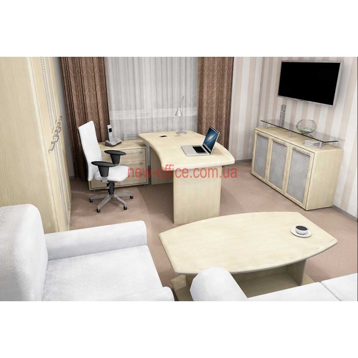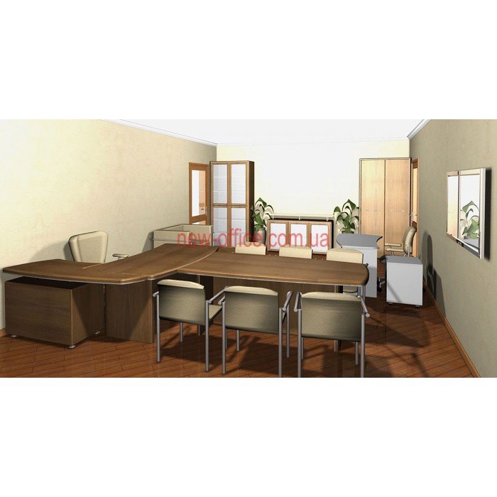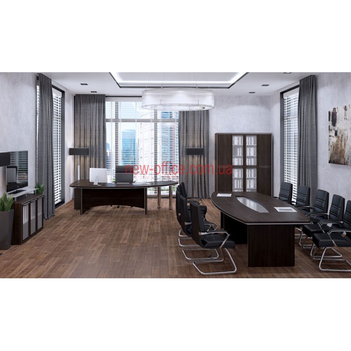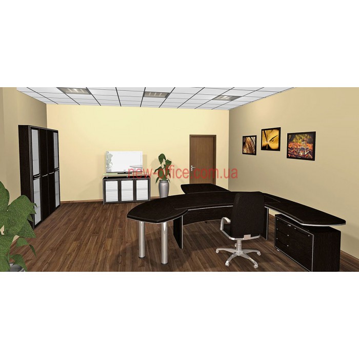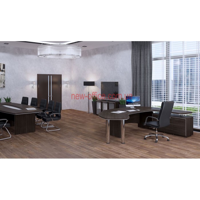 Кабінет керівника Альянс МДФ – виконаний у сучасному міському стилі, він дозволяє не лише займатися повсякденною роботою, а й приймати клієнтів, проводити конференції та наради, вести переговори з бізнес-партнерами. Меблі мають лаконічний стриманий дизайн, але при цьому виглядають цікаво та дорого. В обробці зроблено акцент на контраст ліній та текстуру натурального дерева, завдяки чому колір здається глибшим та насиченим. Кабінет Альянс зручний і практичний в експлуатації, він виготовлений з високоякісних матеріалів, які не потребують особливого догляду та відрізняються довговічністю. Комплектацію можна підібрати індивідуально залежно від форми та розміру офісу та особливостей його використання.