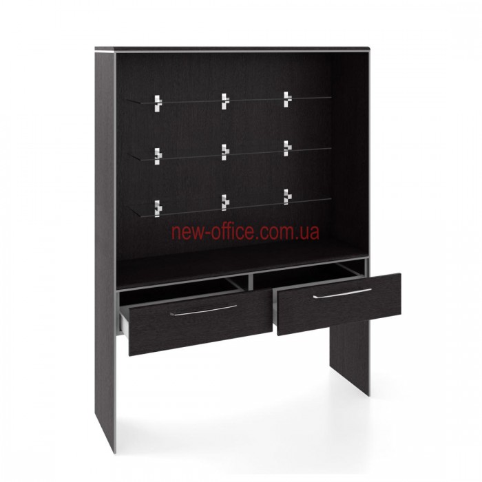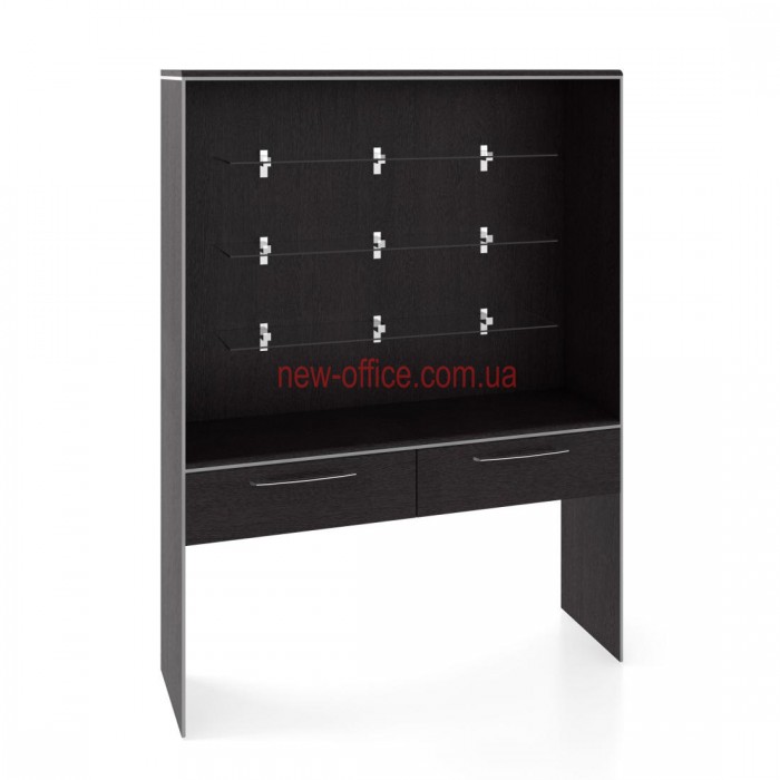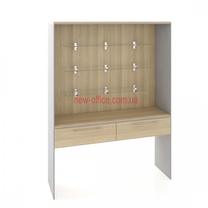 | Фурнітура | Кріплення полиць "рафікс"; Фасад шафи - скло «Флутс» в МДФ; Регулюється за допомогою шафових опор h30 мм |
