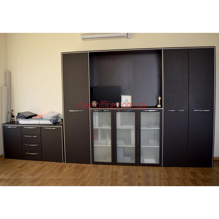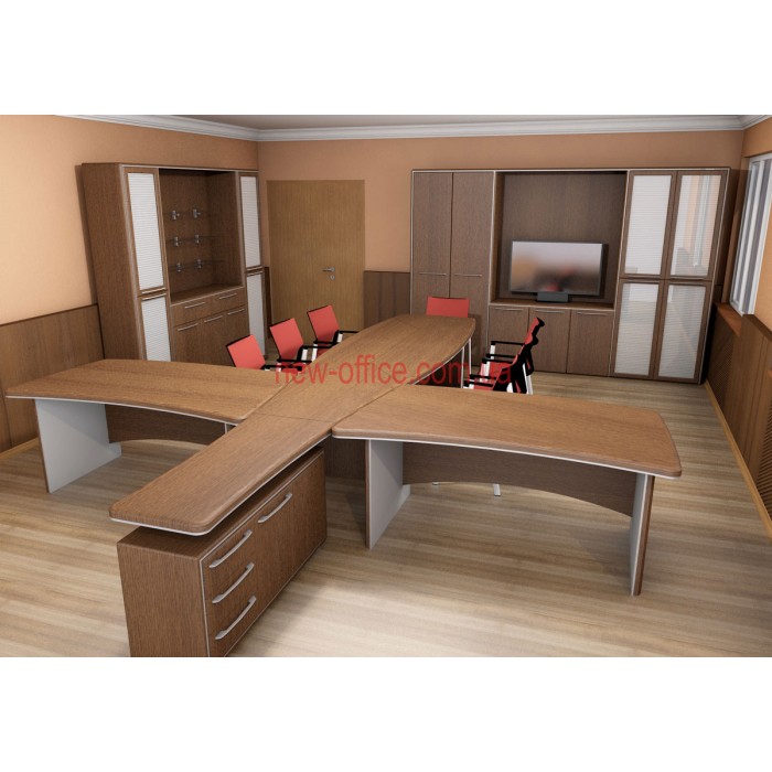 Кабінет керівника Альянс МДФ – виконаний у сучасному міському стилі, він дозволяє не лише займатися повсякденною роботою, а й приймати клієнтів, проводити конференції та наради, вести переговори з бізнес-партнерами. Меблі мають лаконічний стриманий дизайн, але при цьому виглядають цікаво та дорого. В обробці зроблено акцент на контраст ліній та текстуру натурального дерева, завдяки чому колір здається глибшим та насиченим. Кабінет Альянс зручний і практичний в експлуатації, він виготовлений з високоякісних матеріалів, які не потребують особливого догляду та відрізняються довговічністю. Комплектацію можна підібрати індивідуально залежно від форми та розміру офісу та особливостей його використання.