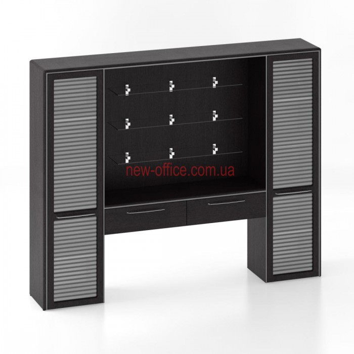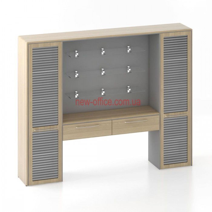 | Фурнітура | Кріплення полиць "рафікс"; Фасад шафи - скло «Флутс» в МДФ; Регулюється за допомогою шафових опор h30 мм |