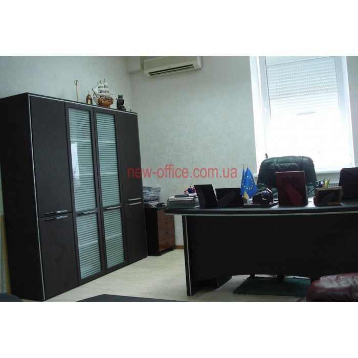 Кабінет керівника Альянс МДФ – виконаний у сучасному міському стилі, він дозволяє не лише займатися повсякденною роботою, а й приймати клієнтів, проводити конференції та наради, вести переговори з бізнес-партнерами. Меблі мають лаконічний стриманий дизайн, але при цьому виглядають цікаво та дорого. В обробці зроблено акцент на контраст ліній та текстуру натурального дерева, завдяки чому колір здається глибшим та насиченим. Кабінет Альянс зручний і практичний в експлуатації, він виготовлений з високоякісних матеріалів, які не потребують особливого догляду та відрізняються довговічністю. Комплектацію можна підібрати індивідуально залежно від форми та розміру офісу та особливостей його використання.