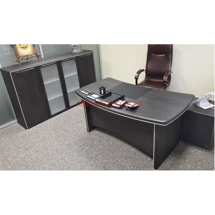 Кабінет керівника Альянс МДФ – виконаний у сучасному міському стилі, він дозволяє не лише займатися повсякденною роботою, а й приймати клієнтів, проводити конференції та наради, вести переговори з бізнес-партнерами. Меблі мають лаконічний стриманий дизайн, але при цьому виглядають цікаво та дорого. В обробці зроблено акцент на контраст ліній та текстуру натурального дерева, завдяки чому колір здається глибшим та насиченим. Кабінет Альянс зручний і практичний в експлуатації, він виготовлений з високоякісних матеріалів, які не потребують особливого догляду та відрізняються довговічністю. Комплектацію можна підібрати індивідуально залежно від форми та розміру офісу та особливостей його використання.