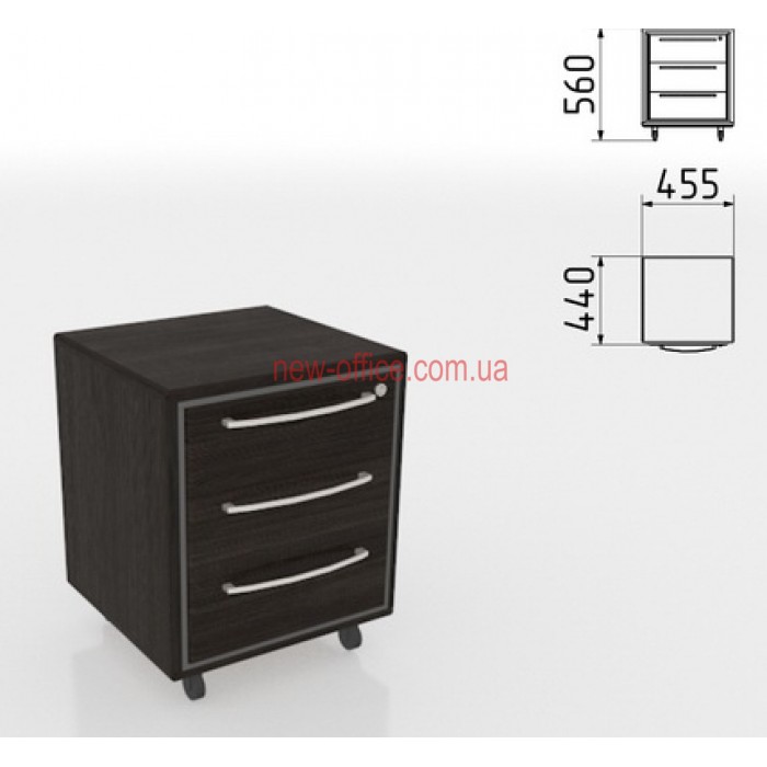 | Фурнітура | Тумба укомплектована центральним замком; коліщата прогумовані зі стопором. |