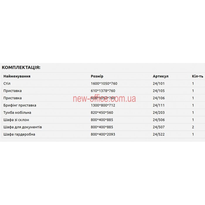 Можливі право та лівосторонні варіанти виробів, всі елементи кабінету керівника продаються окремо.