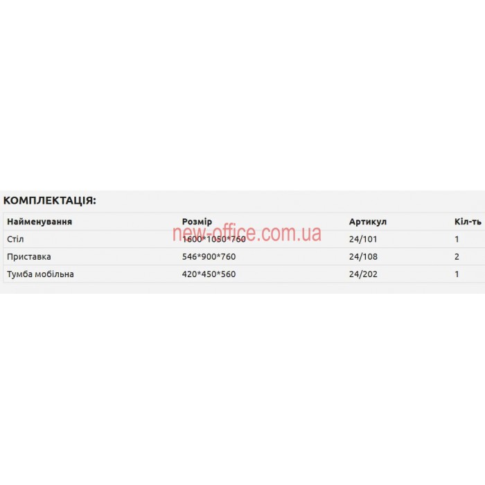 Товщина основи столу, корпусу тумби і шафи - ДСП 18 мм. Крайка ДСП колір в колір;
