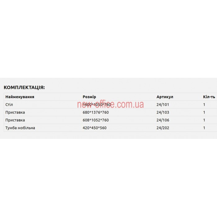 Товщина основи столу, корпусу тумби і шафи - ДСП 18 мм. Крайка ДСП колір в колір;