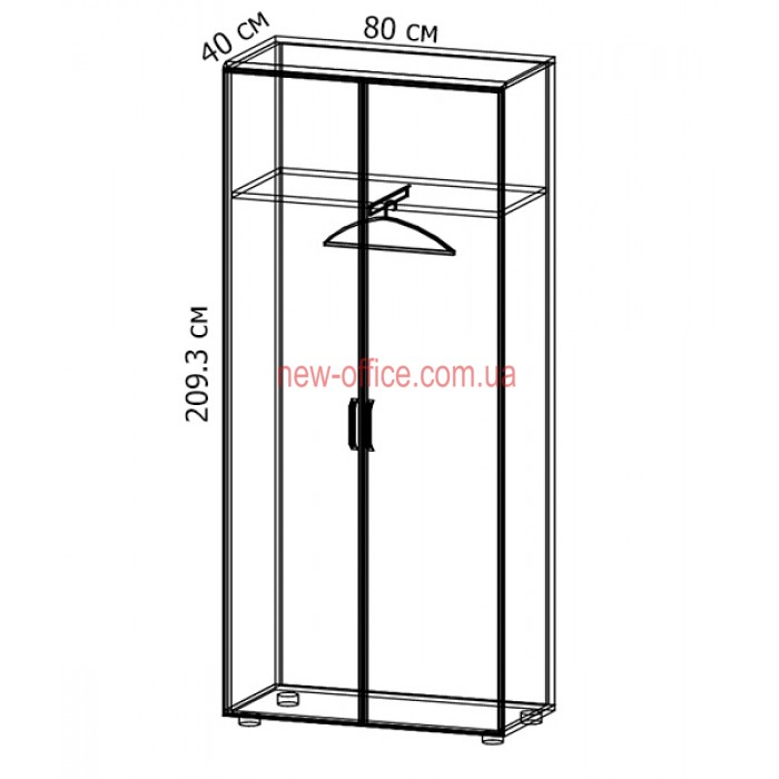 Шафа гардеробна укомплектована висувною штангою. На фасаді зі склом замки неможливі;