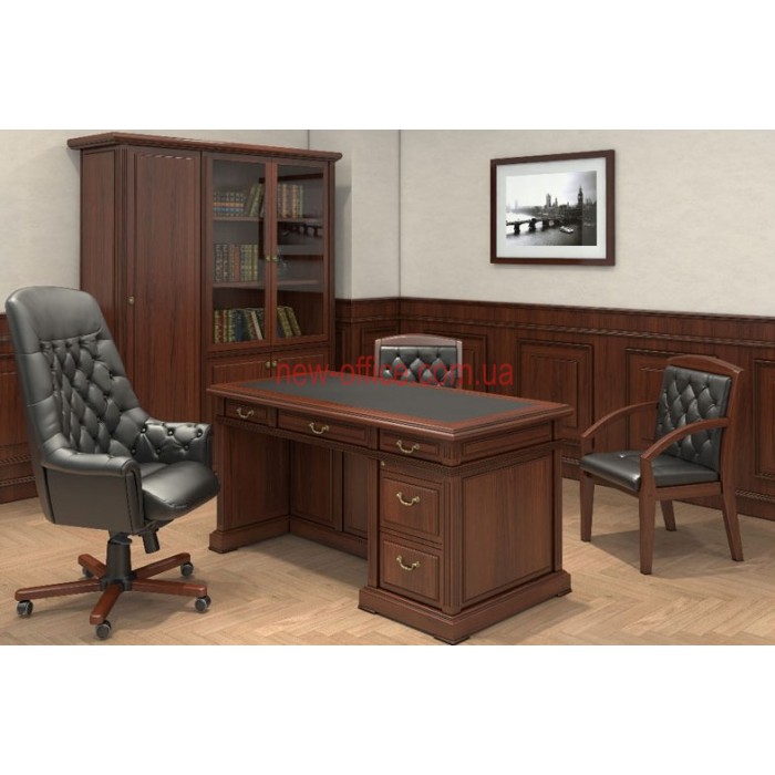 Кабінет використовується як для обладнання робочого місця керівника, так і в домашньому інтер'єрі. Виготовляється із натуральних матеріалів: шпон горіха, дерево, шкіра, МДФ, німецька фурнітура.