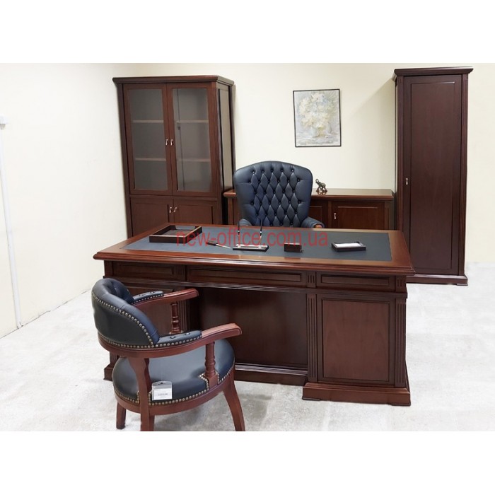 Особливість кабінету керівника в тому, що всі його елементи мають оздоблення з натурального шпону навіть із внутрішньої сторони. Для зручності вибору шафи кабінету керівника мають кілька різновидів, шафа з гардеробом та двома секціями для книг, шафа-бібліотека з двох секцій зі склом, одинарна шафа зі склом.