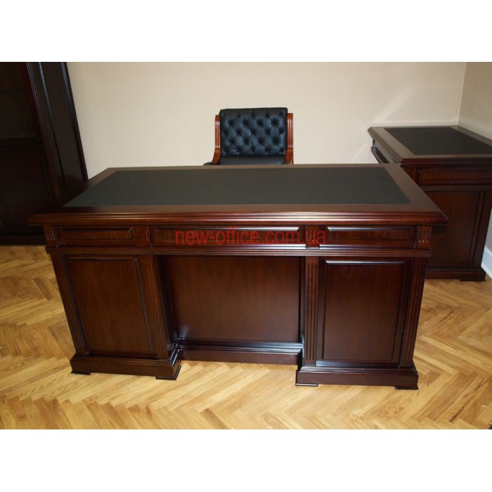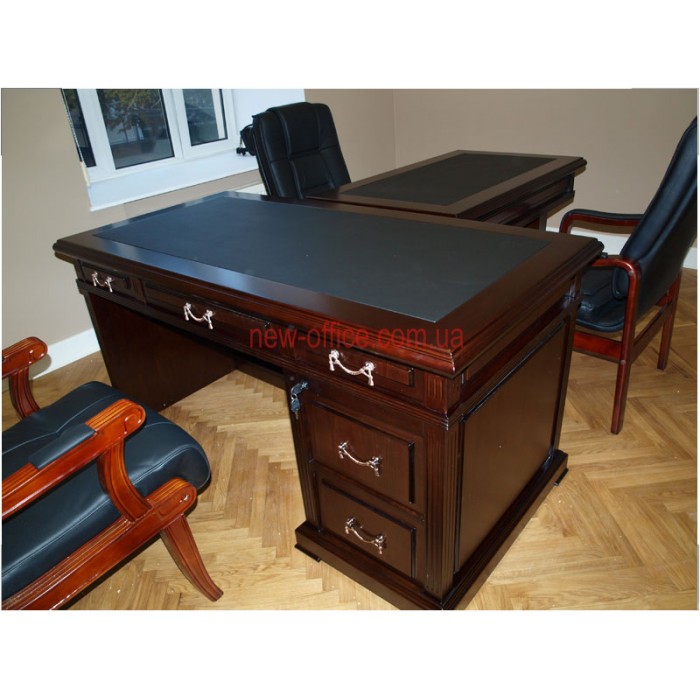 Вартість столу виправдана якістю натуральних матеріалів, у тому числі виконаний кабінет. Насамперед, це масив дерева, шкіра, натуральний шпон та МДФ. Щоб створити рівну поверхню стола керівника, після тонування шпону темний колір поверхню покривають п'ятьма шарами лаку. Ящики письмового столу облицьовані шпоном не тільки з фасаду, але й зсередини та оснащені телескопічними напрямними.