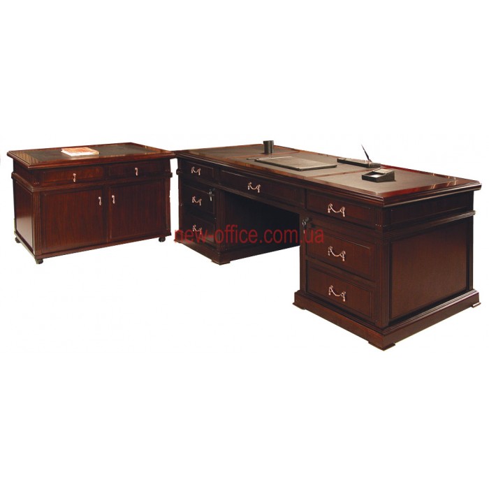 Стіл керівника Класика YDK-3050 із двома вбудованими тумбами призначений для комплектації класичного кабінету керівника. Директорський стіл буде чудовою прикрасою як для кабінету керівника в офісі, так і для домашнього кабінету. Класичні суворі форми столу надають кабінету елегантності передаючи атмосферу аристократичної Англії.