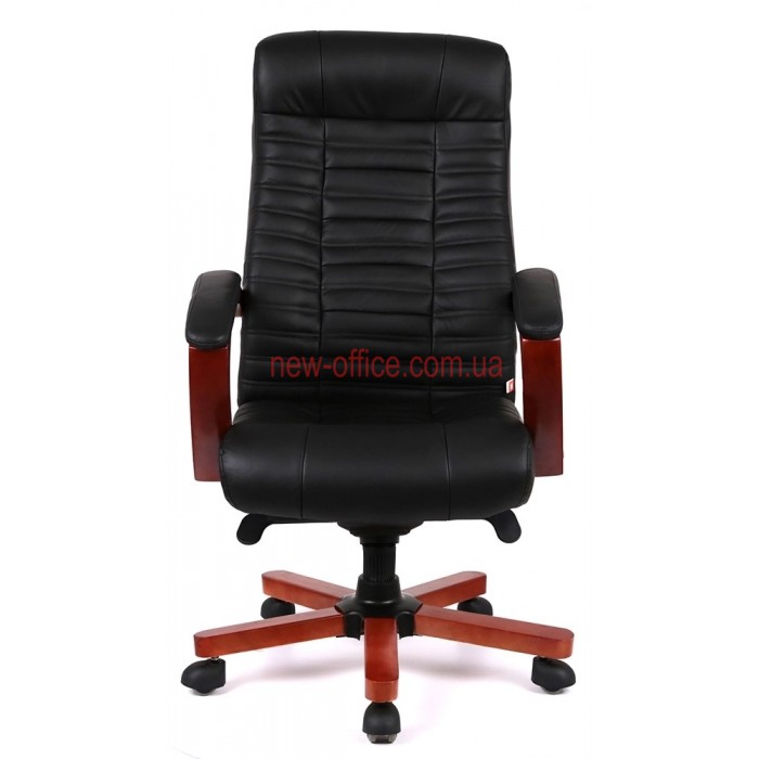 Оббивка. Натуральна шкіра преміум-класу - ідеальний вибір оббивки для крісла Атлант. Переваги даного оббивного матеріалу - це міцність, еластичність, хороша тепло- і влагопроводимості. Наповнення крісла з якісного поролону досить м'яке, створює обволікаюче відчуття комфорту. Для пошиття чохла на робочих поверхнях використовується натуральна шкіра корови, а саме на передній частині спинки, сидінні та підлокітниках. На неробочих поверхнях – екошкіра, а саме штучний матеріал на тканинній підкладці на бокових вставках, задній частині спинки.