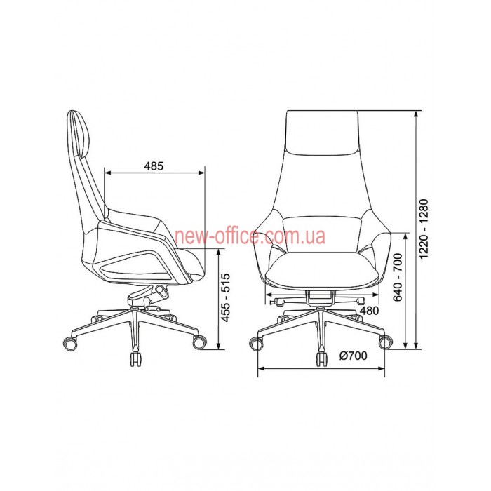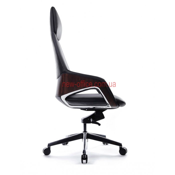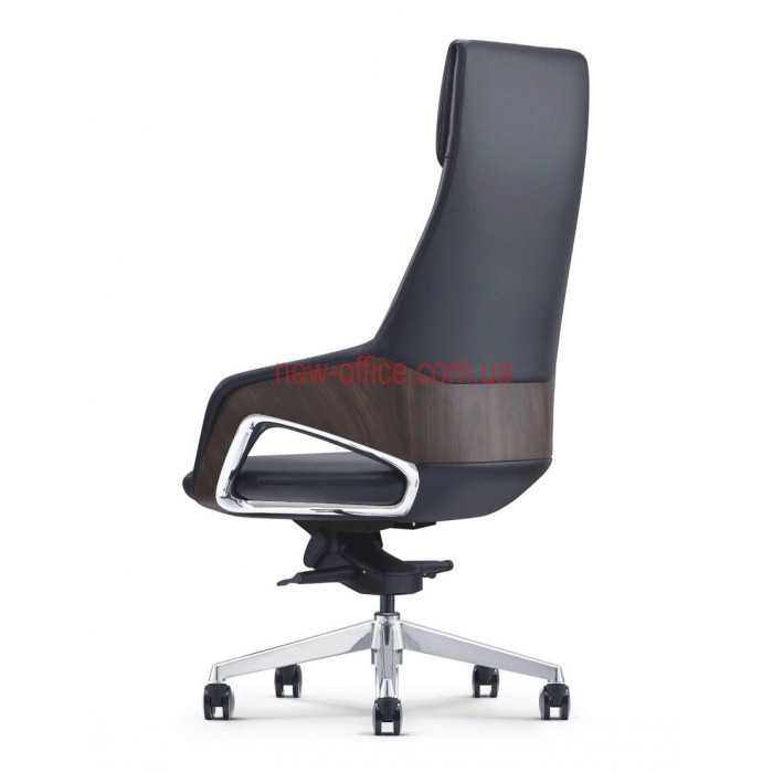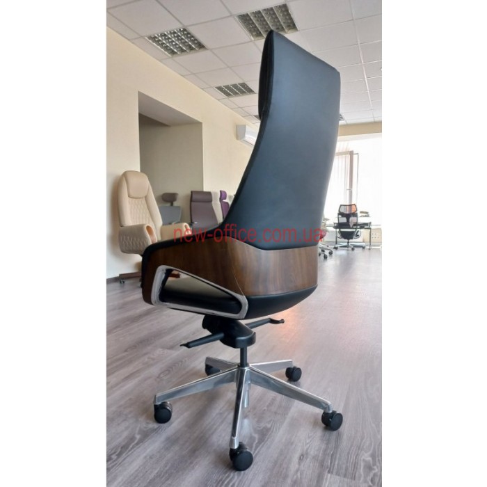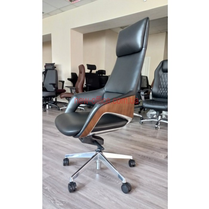 Оббивка - натуральна шкіра найвищої якості, цінна своїм довгим терміном експлуатації, елітним видом. Задня частина крісла виконана, з декоративними вставками, що надає більше оригінальності і стилю. Хрестовина виготовлена з алюмінію, ролики гумові.