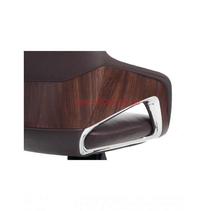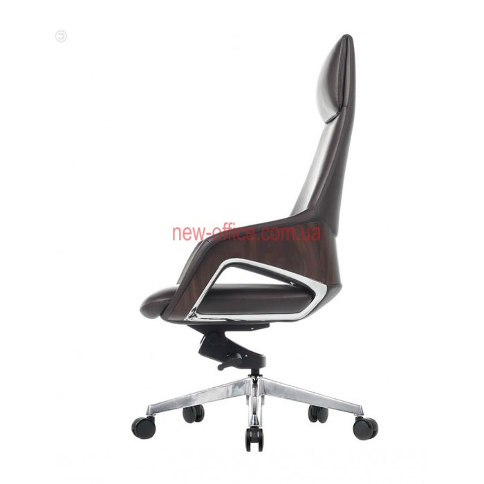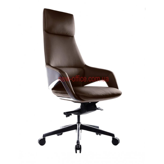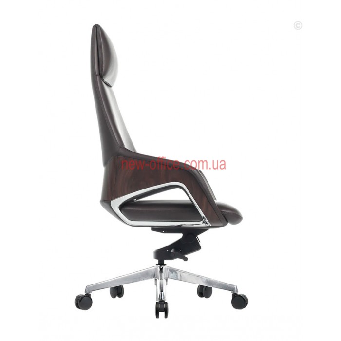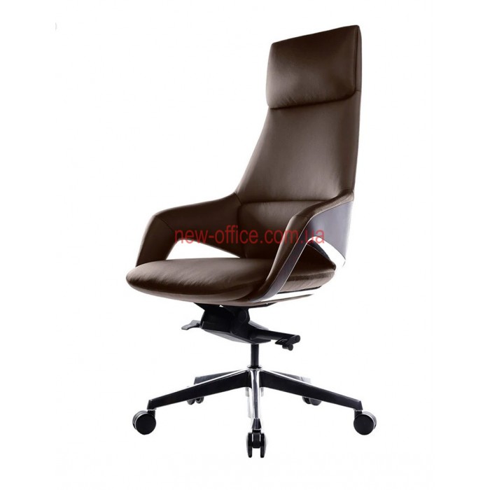 Оббивка - натуральна шкіра найвищої якості, цінна своїм довгим терміном експлуатації, елітним видом. Задня частина крісла виконана, з декоративними вставками, що надає більше оригінальності і стилю. Хрестовина виготовлена з алюмінію, ролики гумові.